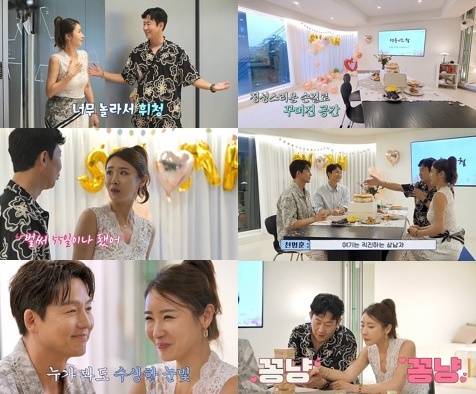 ‘일영 커플’의 진솔한 시간에 이어 천명훈-소월의 데이트가 공개됐다. 이날 천명훈은 장우혁-이정진의 도움으로 파티룸을 예쁘게 꾸며 소월과 ‘55일 기념 이벤트’를 했다. 하지만 소월은 장우혁을 보더니 “너무 잘 생기셨다”며 팬심을 드러냈고, 이정진과는 묘한 눈빛을 주고받았다.