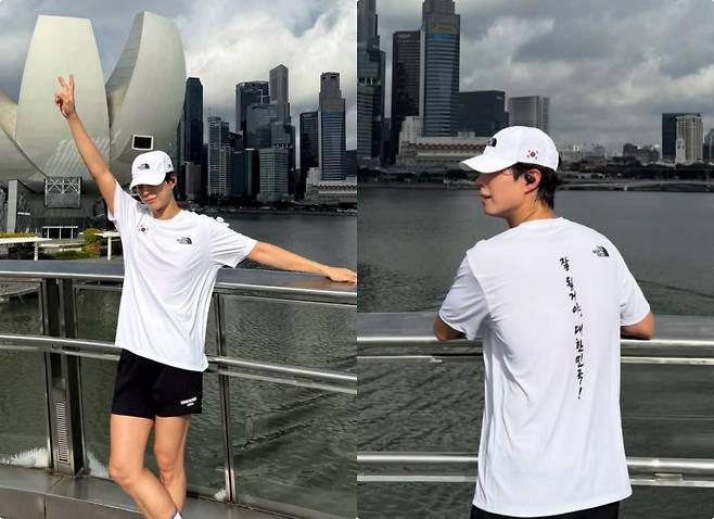 박보검, 가슴에 태극기 품고 싱가포르 달렸다 "잘될 거야, 대한민국!"
