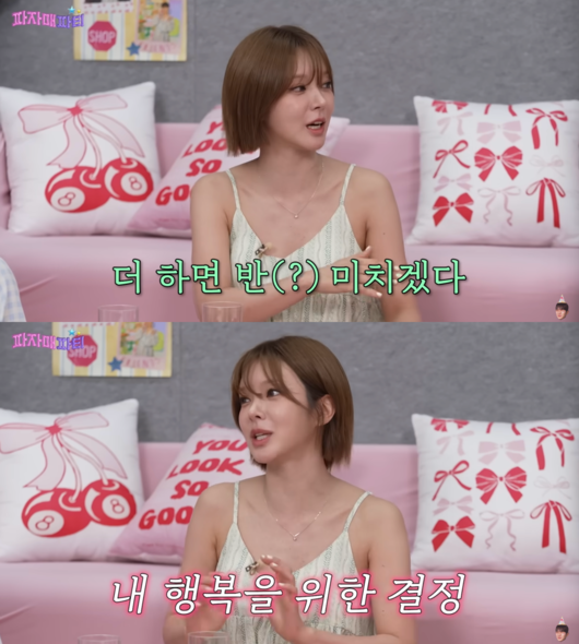 이어 “여기서 더 노력해서 안될 거 같고. 더 하면 반 미치겠다, 해서 박수 칠 때 떠나자, 해서 결심했다"라고 했고, 크레용팝 소율은 “혼자 생각하고 혼자 결정하는 스타일이네”라고 분석했다.
