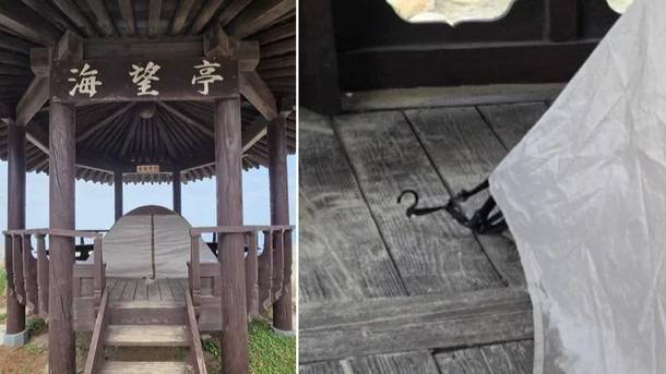 '우리나라 사건 맞아?' 삼척 근덕 하맹방 해수욕장 정자 '해망정'에 고정 나사 박고 텐트 설치 논란
