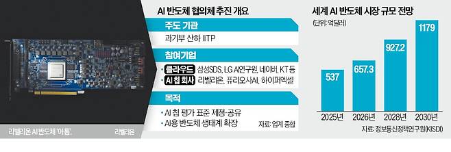 21일 업계에 따르면 최근 과학기술정보통신부 산하 국책 연구기관인 정보통신기획평가원(IITP) 주도로 협의체 발족을 위한 사전 모임이 수차례 열렸다. AI 반도체 업계에선 NPU 업체인 리벨리온, 퓨리오사AI, 하이퍼엑셀이 참여했다. AI 칩으로 데이터센터와 각종 서비스를 운영하는 삼성SDS, LG AI연구원, 네이버, KT 등 주요 클라우드 업체도 동참했다. 학계의 반도체 전문가와 대통령실 고위 관계자도 참석해 힘을 실어준 것으로 알려졌다.