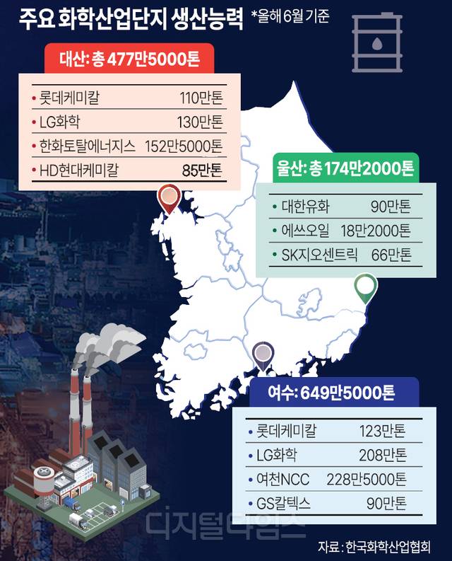 현재 롯데케미칼, 금호석유화학, 한화솔루션 큐셀부문 등 석화기업들의 평균 가동률은 손익분기점으로 여겨지는 70~80%를 밑돌며 60%대까지 떨어진 곳이 속출하고 있다. LG화학은 올해 상반기에 대산·여수 공장의 석유화학 원료 스티렌모노머 생산라인의 가동을 중단한 데 이어 최근에는 나주공장의 알코올 생산도 중단했다.