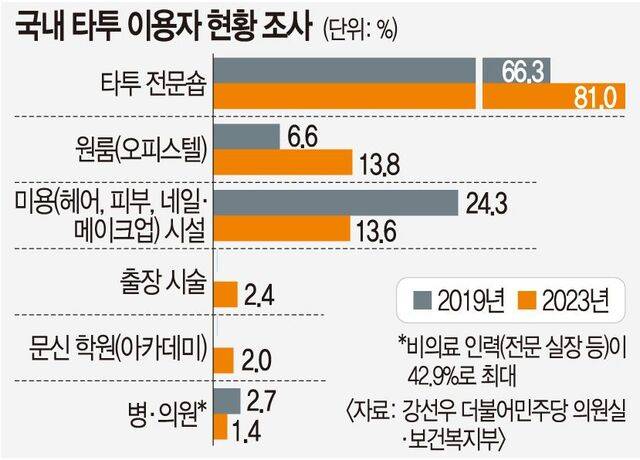 해외는 ‘면허·위생 중심’ 관리로 전환한 상태다. 미국 다수 주가 면허제와 위생·안전 교육을 의무화했고, 유럽연합(EU)은 색소 안전 규제를 시행 중이다. 일본도 2020년 최고재판소 판결로 비의료인 시술을 합법화했다. 우리나라는 타투 시술을 불법으로 규정한 유일한 나라인 셈이다. 업계 관계자는 “규제 공백 속 미흡한 시술은 소비자 안전을 위협할 수 있는 만큼 면허·위생 기준을 갖추는 게 필요하다”고 말했다.
