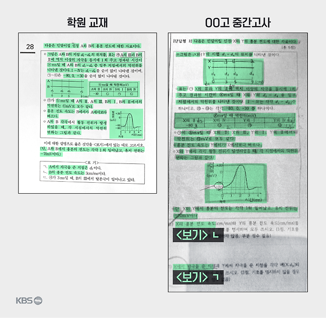 서울의 한 고등학교 교사는 "발문, 도표, 그래프의 순서만 다를 뿐 (학교 시험 문제와 학원 교재 문제의) 출제자가 동일한 것으로 보인다"라는 의견을 전했습니다.