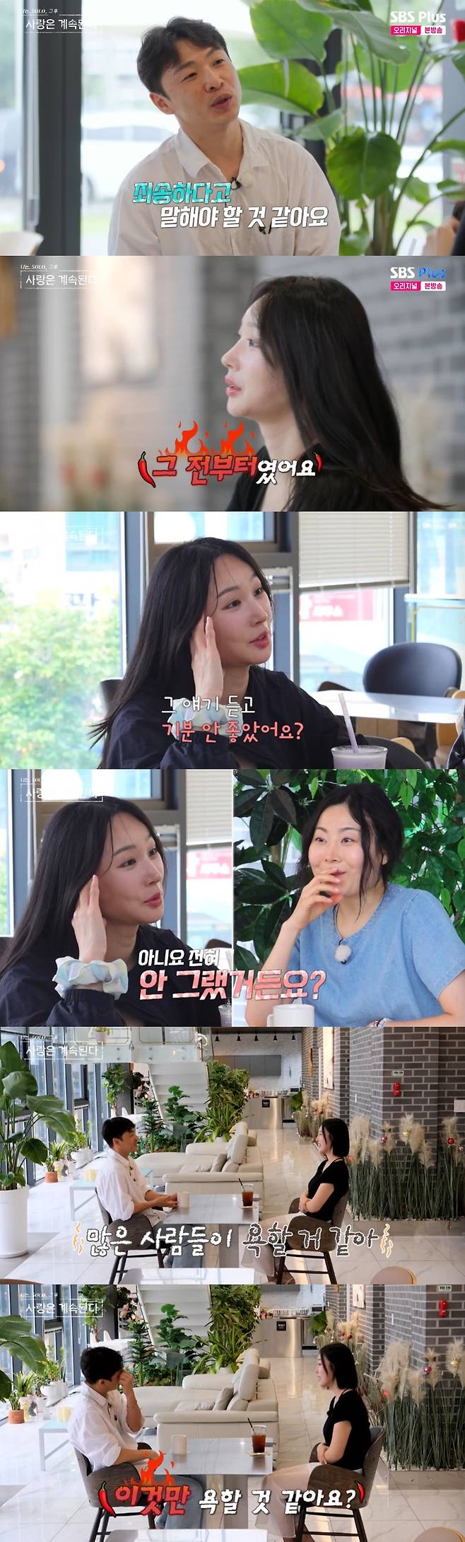21일 방송된 SBS Plus, ENA '나는 SOLO, 그 후 사랑은 계속된다'(나솔사계)에서는 23기 옥순, 24기 옥순, 25기 옥순과 미스터 강의 다대일 데이트 현장이 공개됐다.