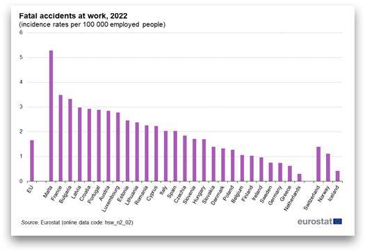 위 그림의 Eurostat 통계는 산재 사망 중 사고 사망자 10만인율을 보여준다. EU 평균은 2명이 채 안 된다. 5명을 넘은 (한국인 대부분이 이런 나라가 있는 지도 모르는) 몰타를 제외하면, 모두 한국보다 낮다. 대한민국 언론이 재정적으로 망하기 직전이라고 악담을 퍼붓는 PIGS(포르투갈, 이탈리아, 그리스, 스페인) 나라들도 한국보다 사정이 낫다. 특히 그리스는 사고사망률이 1명도 안 된다. 혹자는 그리스의 노동통계를 못믿겠다고 할 수 있다. 그렇다면 대한민국의 노동통계는 믿을 수 있나.