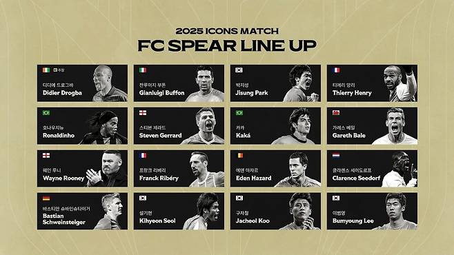 한편, 2025 아이콘매치는 전설적인 축구 선수들이 한국에서 이색적인 경기를 펼치는 넥슨의 이벤트 축구 행사다. 9월 13일에는 출전 선수들이 다양한 미니 게임을 펼치는 이벤트 매치가, 14일(일)에는 FC 스피어, '실드 유나이티드로 나뉘어 11대11로 맞붙는 본 경기가 진행된다.