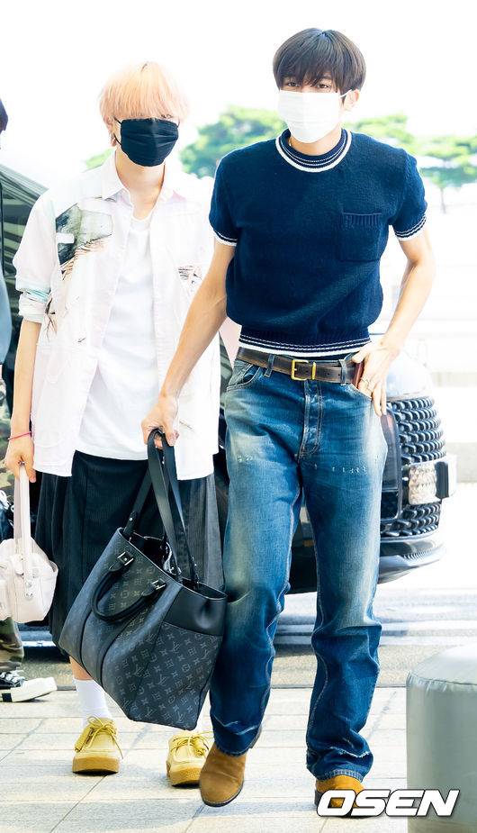엔시티 위시 시온과 사쿠야가 출국장으로 향하고 있다. 2025.08.22 /rumi@osen.co.kr