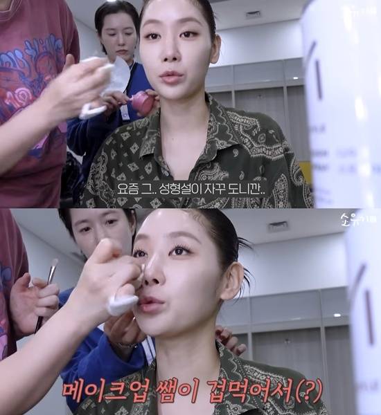 소유는 "원래 이렇게 앞트임을 하는데 며칠 전에는 '코 하이라이터 하지 말까?', '앞트임 하지 말까?'라고 묻더라. 그래서 '아니다, 언니 원래 하던 대로 해도 괜찮다'고 했다"며 성형설 이후 한층 조심스러워진 스태프들의 모습에 의연한 태도를 보였다.