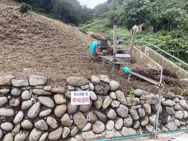 | ▲ 울릉도에서 쉽게 볼 수 있는 농업용 모노레일 |