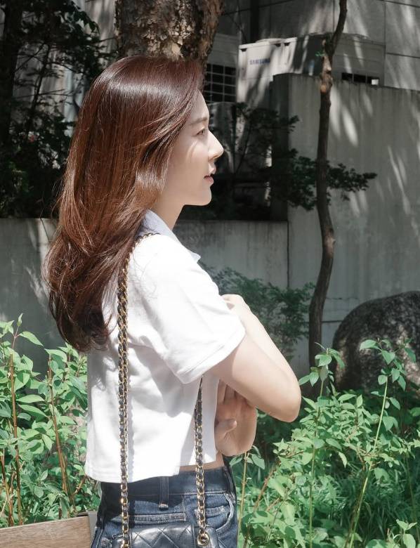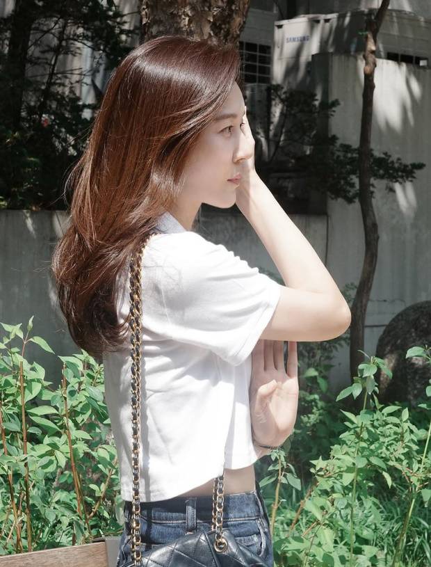 공개된 사진 속 김하늘은 화이트 크롭 티셔츠에 청바지를 매치한 심플한 스타일링으로 등장했다.