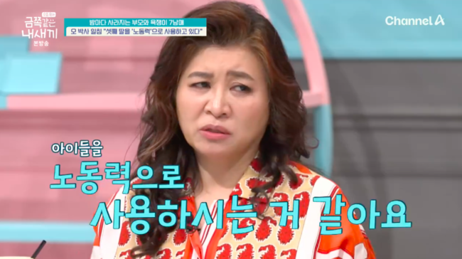 특히 오은영 박사는 망설이다 "아이들을 노동력으로 사용하는 것 같다"라며 "너 학교 안 갈거면 집에서 애 봐, 너 밥값은 해야지 이렇게 받아들인다. 자식을 바라보는 부모의 철학과 기준에 있어서 굉장히 문제 크다고 본다"라고 분노했다.