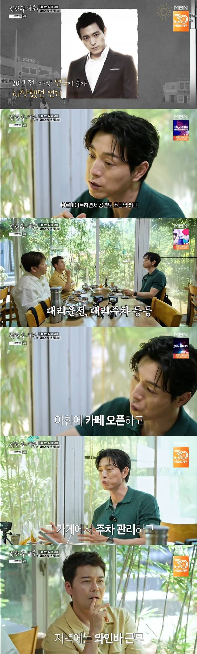 이날 전현무가 "어떻게 데뷔한 거냐. 무명이 좀 길었냐"고 묻자 정성일은 21살에 연극배우로 데뷔해 계속 연극 작품을 오래 했던 과거를 회상했다.