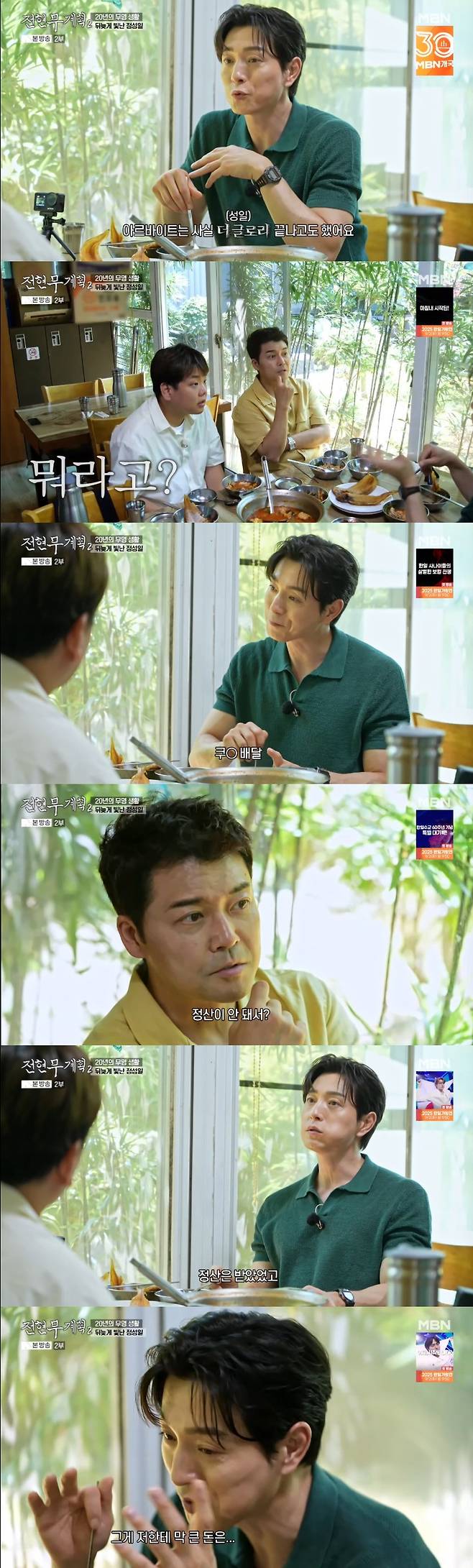 정성일이 쿠팡 배달을 했다고 하자 깜짝 놀란 전현무는 "왜?"라며 "정산이 안 됐냐"고 물었고, 정성일은 "정산은 다 됐었고, 어쨌든 생활은 해야 하지 않냐. 그게 저한테 막 큰돈, 대단한 돈은 (아니었다)"고 털어놨다.