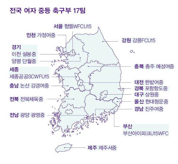 중학교도 마찬가지다. 울산 현대청운중학교는 전국여자축구선수권대회에서 5번 연속 우승했다. 조별리그에서 인천 가정여중, 제주서중에 각각 9 대 0, 6 대 0으로 이겼다. 8강 진출 뒤에도 대전 한밭여중과의 경기를 6 대 0으로 ‘클리어링’ 했다. 현대청운중은 2024년 춘계한국여자축구연맹전, 여왕기 전국여자축구대회, 전국여자축구선수권대회, 추계한국여자축구연맹전 모두 우승했다.