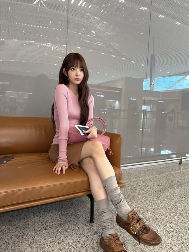 르세라핌 홍은채, 사랑스러움 가득한 공항패션…핑크로 물든 청초美