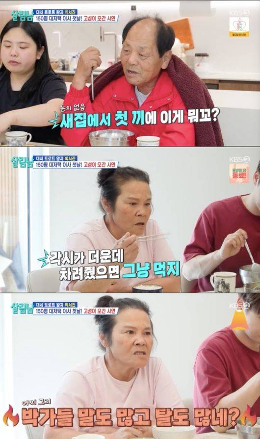 이들 가족은 싸움 끝 각기 다른 메뉴를 가지고 식사를 하기 시작했다. 아버지는 “새집에서 첫 끼에 밥이 이게 뭐냐”라고 불만을 드러냈고 어머니는 “더운데 차려줬으면 그냥 먹어라”라고 맞대응했다.