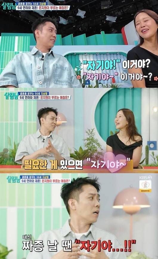 이날 백지영은 은지원에게 예비 신부를 향한 애칭이 있는지 물었고, 은지원은 “흔히 부르는 ‘자기야’다. 억양은 원하는 것에 따라 다르게 한다”고 말했다. 그러면서 “내가 필요한 게 있으면 (부드럽게) ‘자기야’ 한다. 짜증 날 땐 (인상 쓰며) ‘자기야’ 한다”고 재연해 웃음을 자아냈다.