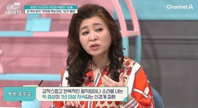 어깨를 들썩이고 고개를 돌리는 행동, 외도와 무관하게 반복되는 음성 틱, 갑작스러운 욕설 분출 등 금쪽이는 투렛이라는 신경계 질환을 앓고 있었다. 하지만 이를 모르는 부모는 금쪽이의 욕설 등을 잘못된 행동이라 여기고 혼만 냈던 것이다. 이와 같은 정서적 영향은 욕을 반복하게 하는 악순환을 불러왔다. 게다가 금쪽이는 의도와 무관하게 외설적인 발언을 하는 외화증까지 있었다.