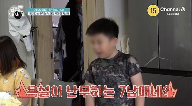7남매 중 누가 금쪽이인지 찾아내는 건 어렵지 않았다. 온 가족에게 무차별 욕설을 퍼붓는 초3 아들(다섯째)이 포착됐기 때문이다. 동생이 자신의 리모컨을 가져가자 대뜸 욕을 하더니 제지하는 형에게도 거침없이 욕설을 쏟아냈다. 엄마가 훈육을 해도 듣는둥 마는둥했다. 형이 효자손을 들고 때리며 혼을 내는 모습도 바람직하지 않았지만, 어쨌든 금쪽이는 아랑곳하지 않았다.
