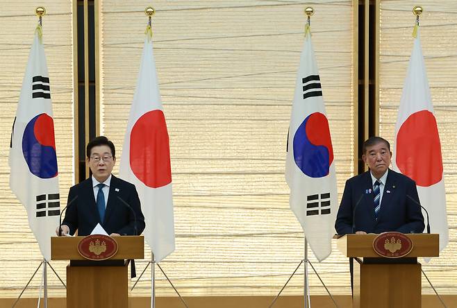 | ▲ 이재명 대통령과 이시바 시게루 일본 총리가 23일 일본 도쿄 총리 관저에서 공동 언론 발표를 하고 있다. 2025.8.23 |