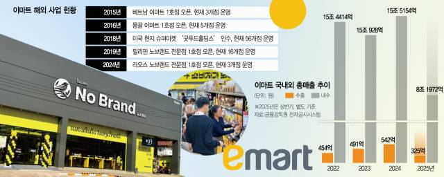 이마트는 2019년에 필리핀에 노브랜드 전문점을 오픈한 이후 현재 16개점으로 확장했다. 지난해에는 라오스에도 노브랜드 전문점을 열었다. 베트남, 몽골 등에 진출한 해외 이마트 매장에도 노브랜드 특화존을 마련해 운영 중이다. 체다치즈볼, 리얼팜(캔햄), 깍두기양밥 등이 인기 제품이다. 특히 노브랜드의 제조사의 70%는 국내 중소기업 제품이다.