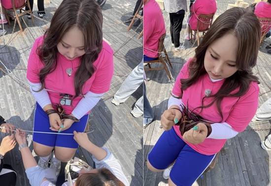 공개된 사진 속 풍자는 핑크색 티셔츠와 파란색 반바지를 매치한 편안한 차림으로 촬영 준비 중인 모습이다. 긴 웨이브 헤어스타일과 함께 몰라보게 달라진 슬림한 얼굴선이 시선을 끈다.