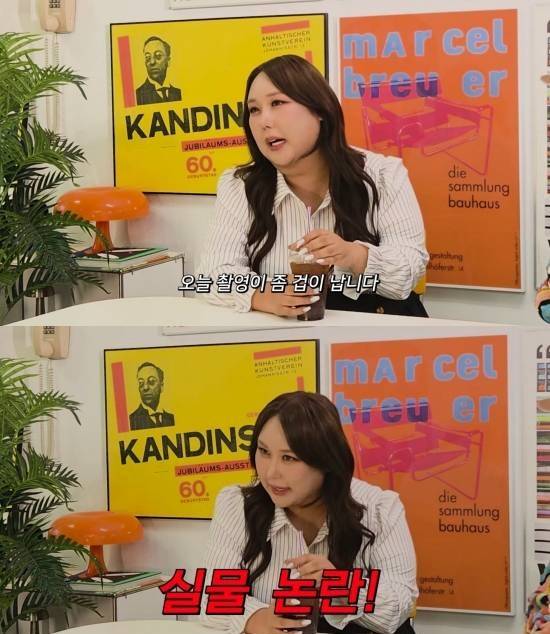 공개된 사진 속 풍자는 핑크색 티셔츠와 파란색 반바지를 매치한 편안한 차림으로 촬영 준비 중인 모습이다.