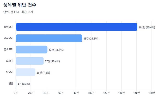 단속 결과 원산지를 거짓 표기하거나 아예 표시하지 않은 위반 건수는 355건에 달했다.