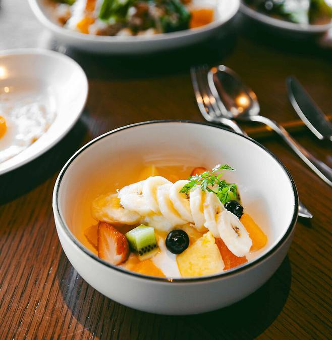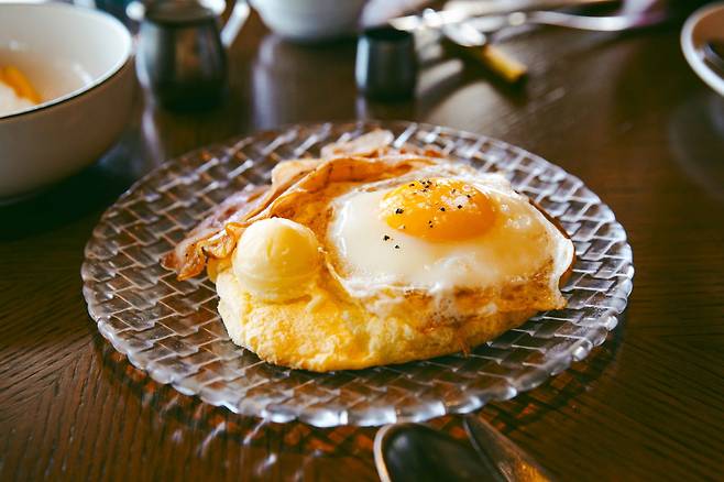 아침은 오전 8시부터 시작하는데, 대표 메뉴는 이곳만의 팬케이크다. 일본과 미국의 팬케이크가 조합된 모양새다. 수플레처럼 푹신하면서 동시에 오리지널 팬케이크의 쫀득함도 살렸다. 버터와 생크림, 시럽만 곁들여서 즐기거나 베이컨과 계란 프라이를 더한 아메리칸 스타일도 준비돼 있다.
