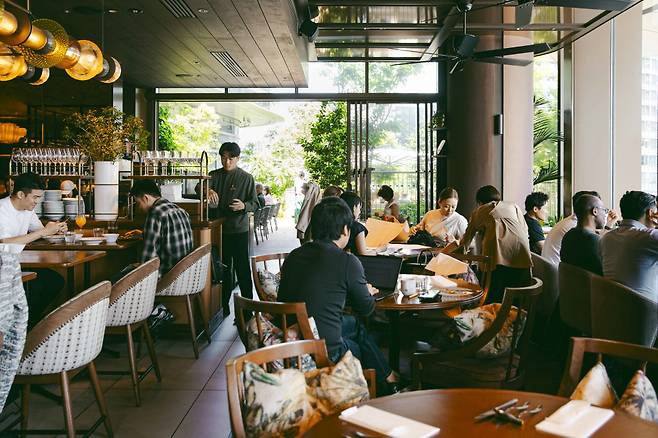 요즘 도쿄에서 가장 주목받는 아자부다이힐스, 그리고 그 안에서 뜨거운 인기를 증명하고 있는 곳이 Balcony by 6th다. 화사한 빛을 머금은 테라스나 채광 좋은 실내에서 조식과 브런치를 즐기고, 저녁에는 우아한 분위기에서 와인과 음식을 즐길 수 있어서다.