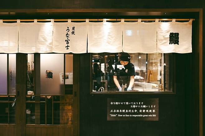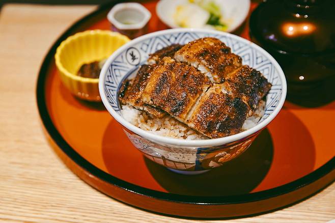 이 식당의 특징은 일반 장어보다 30% 이상 큰 아오 우나기(푸른색 빛을 띠는 장어)를 활용하며, 찜 없이 바로 숯불 직화로 고열에서 굽는다. 한국인이 좋아하는 겉바속촉으로 장어를 익히는 셈이다.