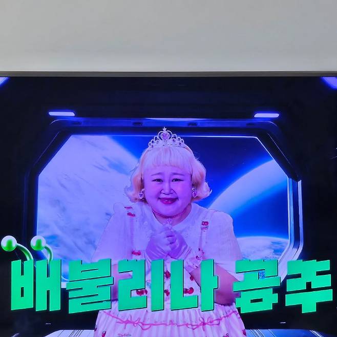 홍윤화는 '디즈니플러스'의 한 프로그램에서 배불리나 공주를 맡은 것으로 보인다.