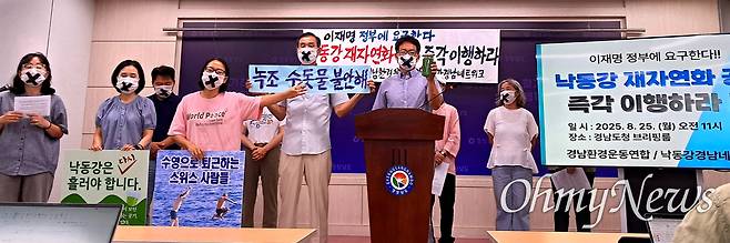"강물을 원래대로 흐르게 하는 것밖에 없다"라고 한 이들은 "낙동강 8개 보 수문을 개방 하기 위해서는 취·양수시설 개선 사업비를 2025년 하반기 추경을 통해 확보하고, 늦어도 2026년 봄까지 완료해야 한다"라고 강조했다.
