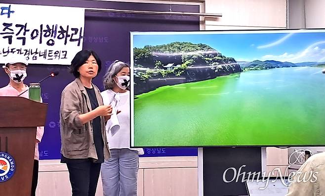 | ▲ 낙동강네트워크, 경남환경운동연합은 25일 경남도청 프레스센터에서 기자회견을 열어 낙동강 녹조 대책을 촉구했다. |