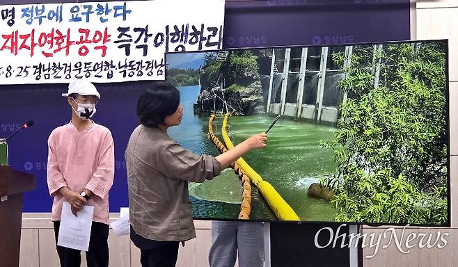 낙동강네트워크·경남환경운동연합은 25일 경남도청 프레스센터에서 기자회견을 열어 "근원적 녹조 해소 대책은 낙동강을 흐르게 하는 것뿐"이라며 이같이 촉구했다.