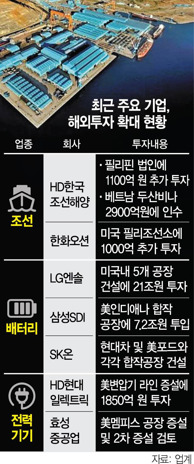 조선, 4000억 들여 동남아 기지 확충···배터리3사는 53조 투입 美 공장 짓는다