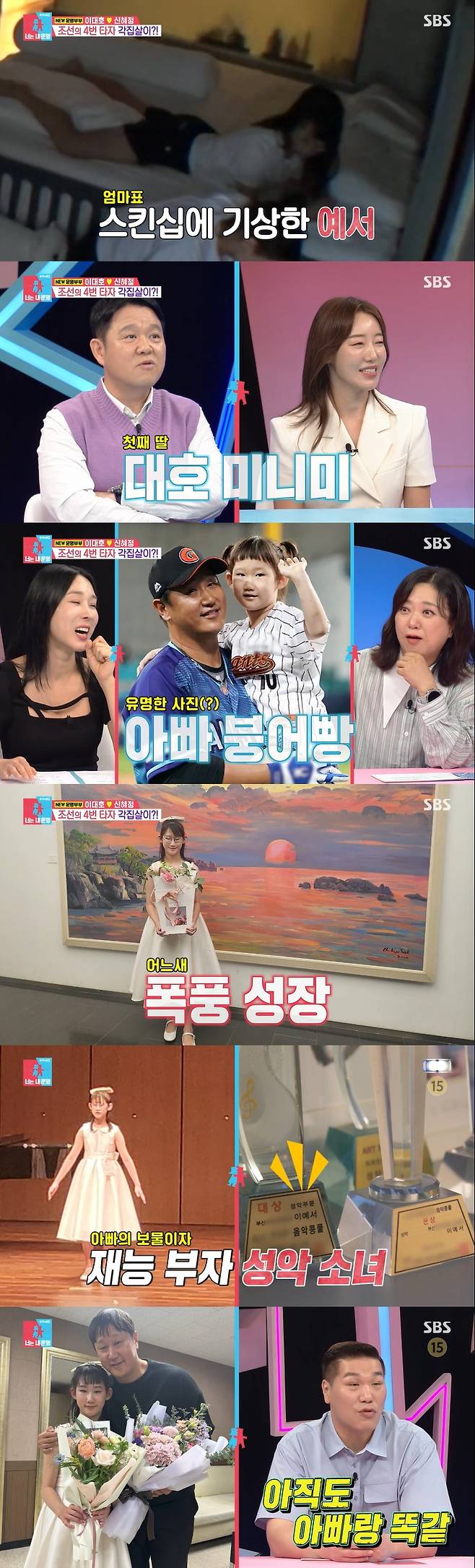 예서는 음악 콩쿠르에서 성악 부분 대상을 차지할 정도로 성악에 재능이 있다고. 또 이대호와 투 샷이 공개되자 서장훈은 "아직도 똑같다"며 여전히 붕어빵인 부녀의 모습을 언급했다.