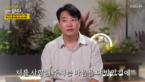 이어 윤다훈은 저녁 식당 예약까지 준비하며 세심함을 보였고, 이날 "'같이 삽시다' 오늘이 마지막 촬영"이라며 담담하게 작별 소식을 전했다.