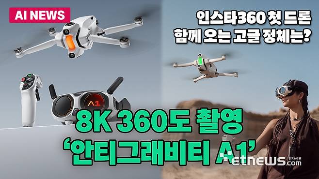 360도 액션캠으로 잘 알려진 인스타360이 새로운 FPV 드론 '안티그래비티 A1'(Anti-gravity A1)을 공개했다. 이는 인스타360의 새로운 드론 브랜드 '안티그래비티' 이름을 달고 나온 첫 제품으로, 드론 본체와 함께 OLED 비전 고글과 그립 모션 컨트롤러가 세트로 제공된다.