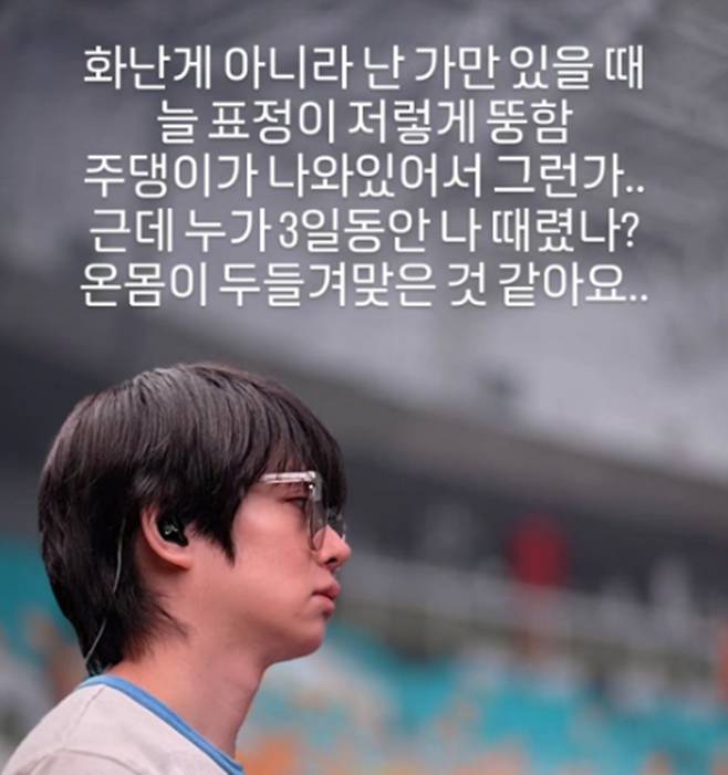김희철은 25일 자신의 계정에 "화난 게 아니라 난 가만있을 때 늘 표정이 저렇게 뚱하다. 주둥이가 나와 있어서 그런가. 근데 누가 3일 동안 나 때렸나? 온몸이 두들겨 맞은 것 같다. 슈퍼쇼 또 하고 싶다"는 글을 게재했다.