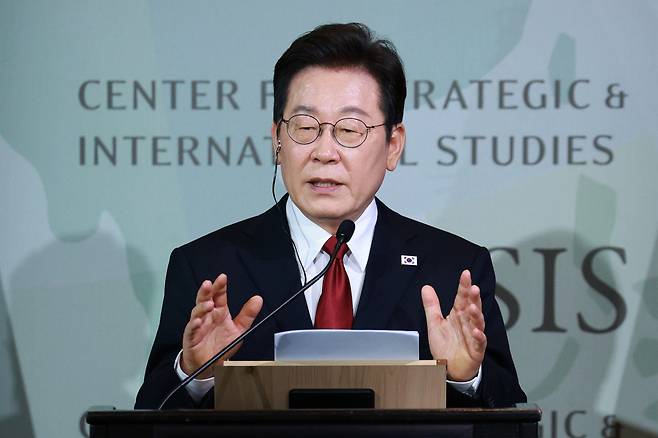 | ▲ 이재명 대통령이 25일(현지 시각) 미국 워싱턴DC 전략국제문제연구소(CSIS)에서 정책 연설을 하고 있다. 2025.8.26 |