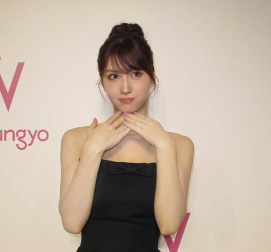 깔끔하게 올려 묶은 헤어스타일과 은은한 메이크업은 모모의 청순한 매력을 더욱 부각시켰다. 여기에 작은 리본 디테일이 들어간 블랙 원피스는 모모 특유의 발랄함과 성숙미를 동시에 담아냈다.