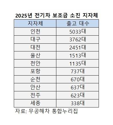 26일 무공해차 통합누리집에 따르면 인천, 대구, 대전, 울산, 천안, 포항, 순천, 안산, 전주, 세종 등 20여개 지자체가 공고한 올해 전기차 보조금 접수가 조기 마감됐다. 일부 지자체는 구매 문의가 폭주하자 예산을 추가로 편성, 당초 공고한 보급 대수보다 초과해 보조금을 지급했다.