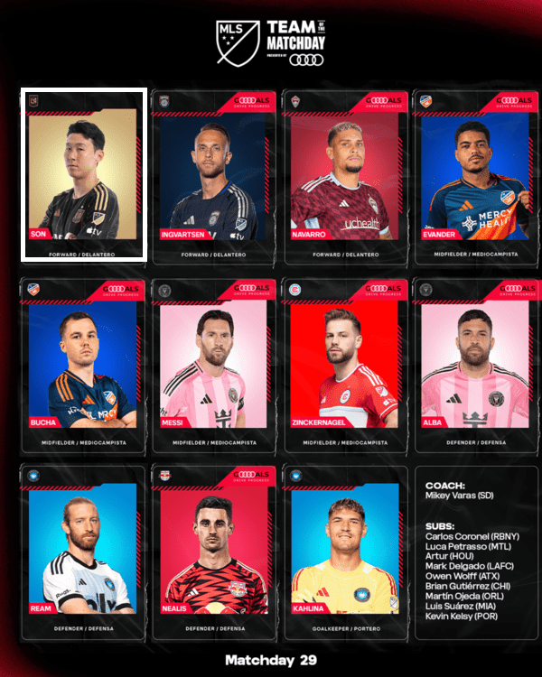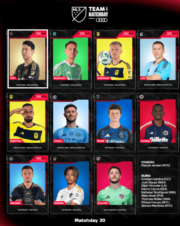 MLS 사무국은 26일(한국시간) 공식 홈페이지를 통해 2025 MLS 매치데이 30 베스트 11를 공개하며 "스타 선수들이 대승과 이변을 주도하며 아우디가 선정하는 '팀 오브 더 매치데이'에 이름을 올렸다"고 전했다.