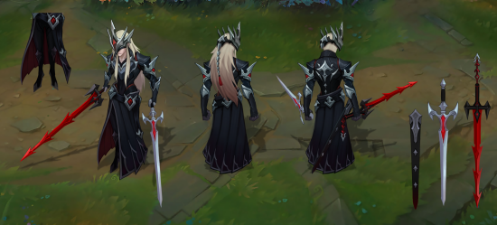 스킨 콘셉트는 블랙과 레드 톤의 중세 기사풍 디자인으로 통일됐다. 날카로운 갑옷 디테일과 붉은 에너지 이펙트가 강조돼, 2024 월즈 결승전의 치열함과 우승의 영광을 시각적으로 담아냈다. 각 스킨에는 선수 개인의 플레이 스타일과 취향이 반영된 디테일이 더해졌으며, 애니메이션 모션과 이펙트 또한 맞춤 제작됐다.