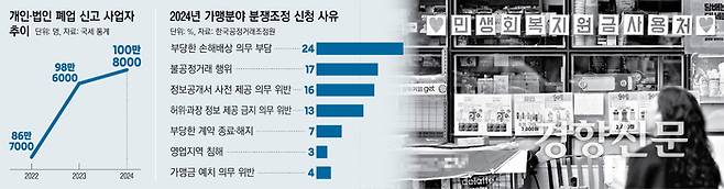 점주에 계약해지권을 부여하자는 움직임은 악화일로 상태인 자영업자들의 숨통을 틔워주는 조치로 풀이된다. 통계청에 따르면 지난해 폐업 신고사업자(100만8000명)로 처음 100만명을 돌파했다. 2023년부터 2년 연속 증가세다. 가맹사업도 추세가 비슷하다. 지난 4월 공정위의 ‘2024년 가맹사업 현황 통계’보면 발표 따르면 지난해 프랜차이즈 브랜드 숫자는 통계 집계 이래 처음으로 감소했다. 2023년 기준 외식업 가맹점 폐점률도 14.9%로 1년 전보다 0.4%포인트 올랐다.