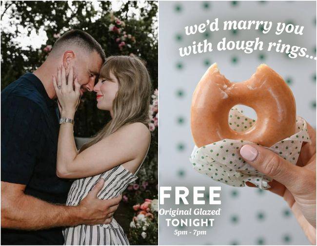 이들의 소식에 글로벌 브랜드까지 발 빠르게 움직였다. 도넛 브랜드 크리스피 크림은 26일(현지 시간) 단 하루, 오후 5시부터 7시까지 무료 오리지널 글레이즈드 도넛을 증정하는 ‘프로포즈 링 기념 이벤트’를 전격 진행했다. “도넛으로 만든 반지라면 언제든 결혼할 수 있다”라는 재치 넘치는 홍보 문구와 함께, ‘스위프티 배지’를 자랑해온 브랜드의 팬심을 드러냈다.