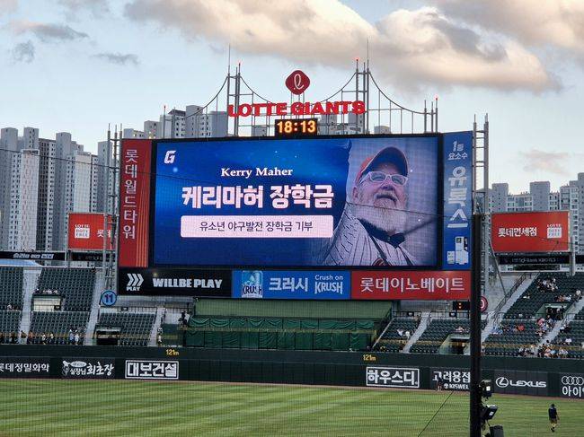 케리 마허 장학위원회는 지난 26일, 부산 사직구장에서 열린 KT 위즈와의 경기를 앞두고 ‘케리마허 장학금’ 3주기 전달식을 가졌다.