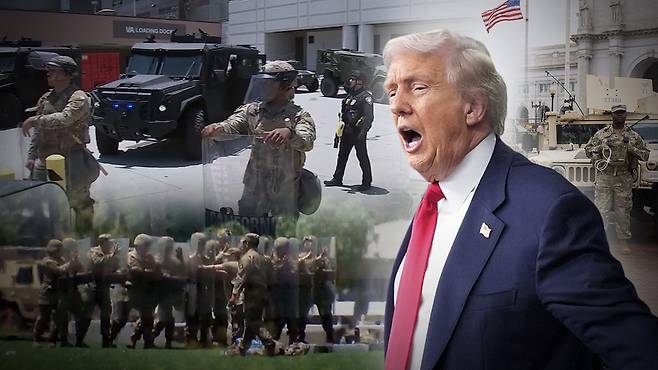 그런데 트럼프도 이번에 린든 존슨 대통령이후 60년 만에 주지사 동의 없이 주방위군을 동원했습니다. 트럼프 대통령은 불법이민 단속에 반대하는 시위가 도를 넘었다며 지난 6월 캘리포니아에 주방위군 2천 명을 투입했습니다. 이번 일련의 주방위군 투입의 첫 사례였습니다. 워싱턴시는 주는 아니고 연방직속의 특별구역이란 지위에 있지만 역시 워싱턴 시장 동의 없이 주방위군이 투입된 건 마찬가지입니다. 60년 만에 새로운 역사를 트럼프 대통령이 만들고 있는 겁니다.